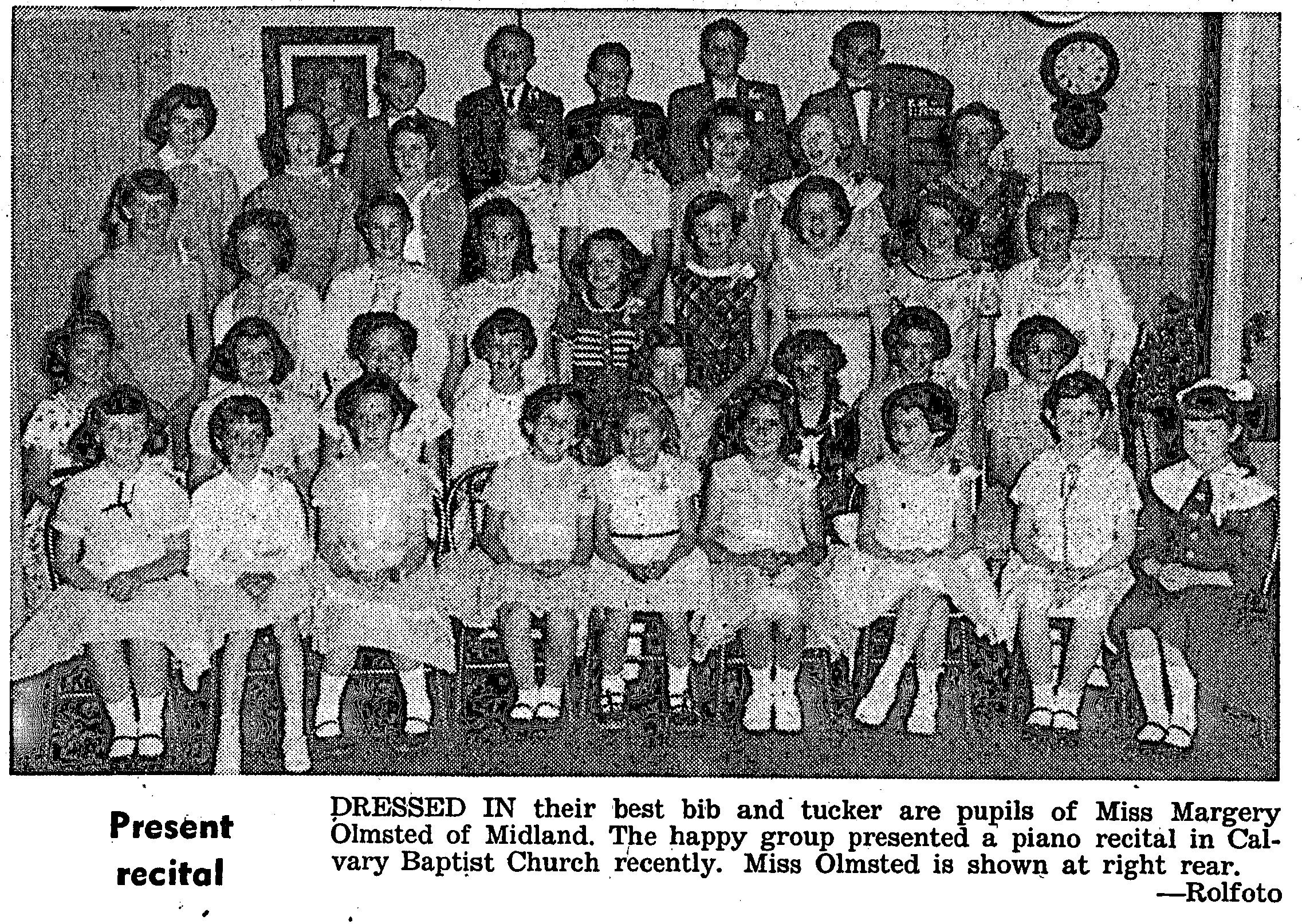 - Midland’s award-winning Citizens’ Band presented its second concert of the season to a bumper crowd in Little Lake Park, Sunday night. Estimates of the crowd, which was seated in front of the bandstand and in hundreds of cars nearby, ran from 800 to 1,000 persons. The band directed by Bandmaster Al Hume and for one number by the new Midland Salvation Army Officer, 2nd Lieut. George Swaddling played a varied program of hymns, marches and classical selections. They received their greatest applause and car-horn ovation after playing Holiday Sketches, the Waterloo festival test piece for which they won the senior division brass band title.