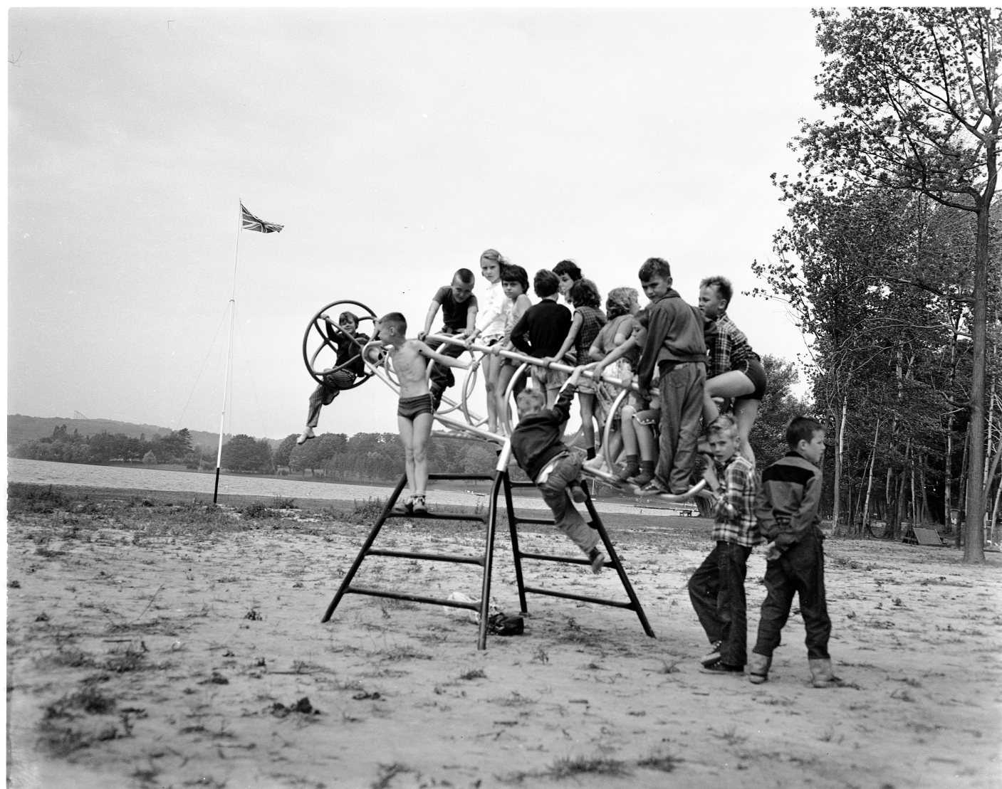 These space aged tads are making full use of the latest gadget for interplanetary (imaginative, that is) travel, the “Sputnik” is located in the playground at Little Lake Park and was donated by Midland Y’s Men’s Club.