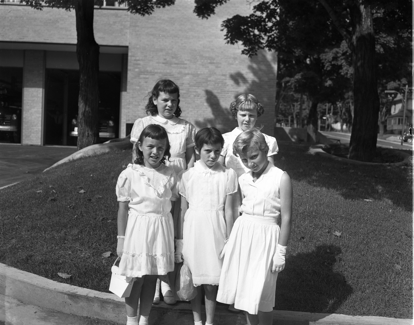 Five of the hundreds of the marchers who took part in the July 12 Orange parade in Collingwood Saturday were these five members of the girls’ juvenile lodge of Midland. Left to right are, front row, Heather Crawford, Audrey Hoy, Florence Chapman; back row, Nancy Thayer, Karen Atkinson.
