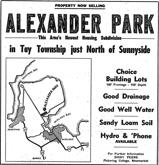 - County Herald headline of Jully 25, 1958; See Possible Revenue $1,500.00 in Woodlots. Existing woodlots in Tiny, Tay, Flos and Medonte Townships, if adequately managed and given proper care immediately, could provide a revenue in future years ranging from $500,000 to $l,500,000 to their owners. This information was given by Ross Grinnell, a senior official of the Ontario Department of Lands and Forests, at a meeting of the four township councils and conservationists in the Waverley Orange Hall Tuesday night. Grinnell, one of the mainsprings behind the land-use survey of four North Simcoe municipalities, said this revenue factor formed one of the major focal points of the survey and the subsequent report released about a month ago.