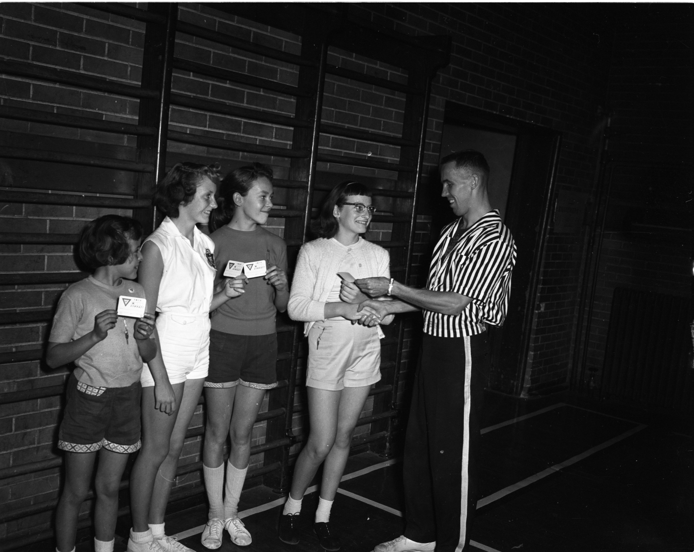 The YMCA’s annual drive for funds got off to a good start at the campaign’s opening banquet in the “Y” Wednesday night. Before the meeting adjourned, more than 20 percent of the objective of $10,500 had been received in cash and pledges. Susan Heels, Joanne Kettle, Sonja Beatty, and Janet Setterington receive certificates from Lloyd Stackhouse.