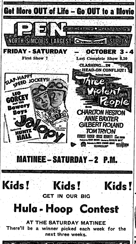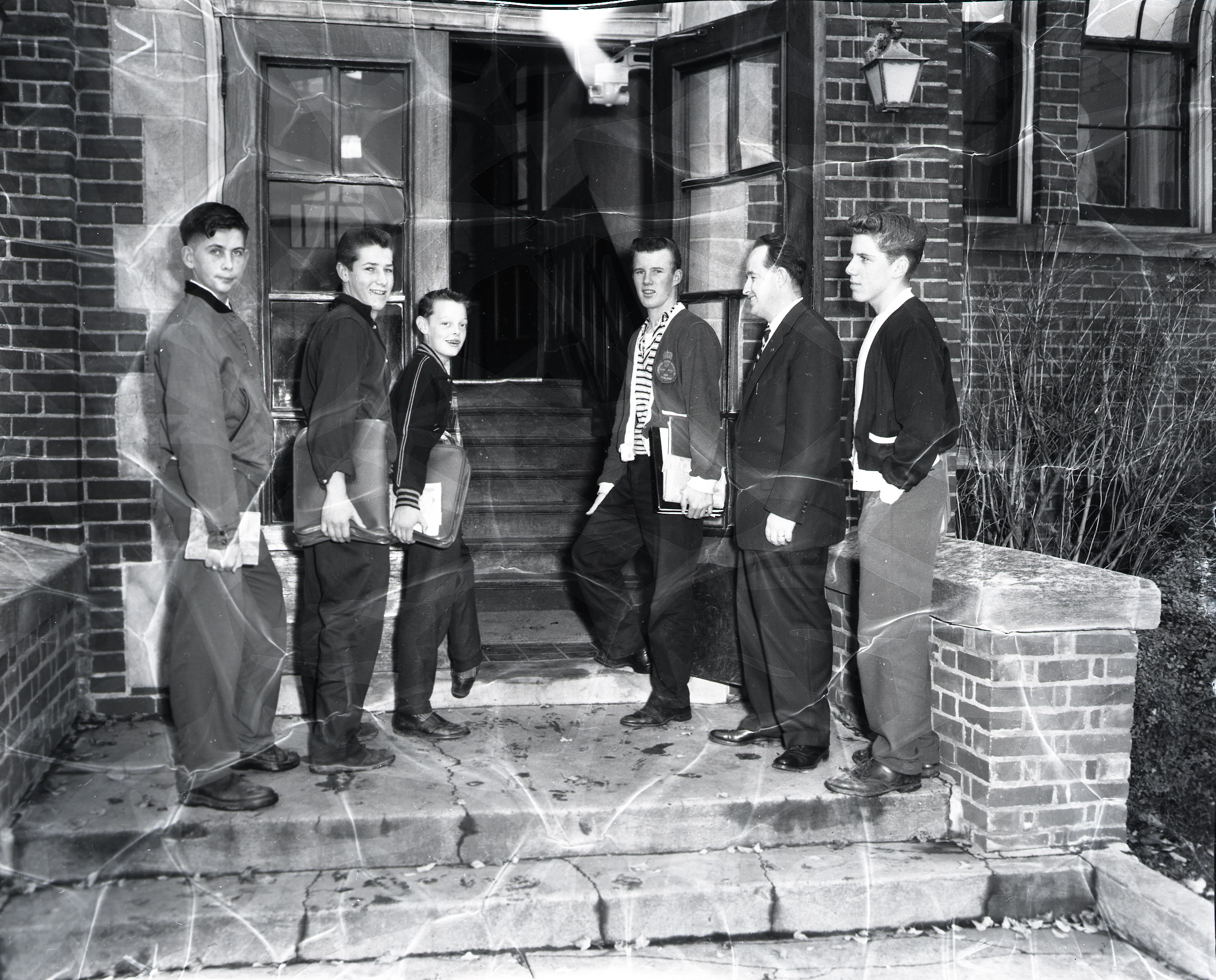 Picture used in an ad for the YMCA fundraising campaign, the copy read as follows; HELP KEEP THESE DOORS OPEN Join with your friends and neighbors by giving financial support to your YMCA. Every dollar is needed if the YMCA is to continue its active program with the youth of the district. -YOUR YMCA CAMPAIGN FOR FUNDS STARTS TONIGHT – The volunteer canvasser who calls at your home is giving his time voluntarily for a cause he believes in — please don’t disappoint him. -CAMPAIGN OBJECTIVE $10,500- If by chance you are not canvassed but you would like to make a donation to this worthwhile cause please telephone LAkeside 6-6461 or call at the YMCA on Hugel Avenue West, Midland.