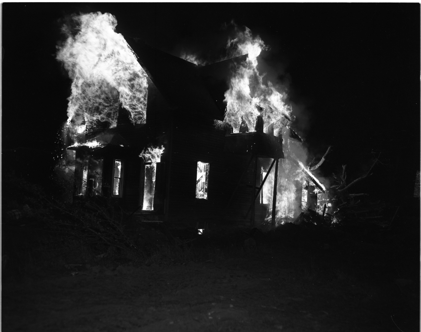 Dangers of setting buildings on fire purposely, as was done to the old Grant home on Wireless Hill Halloween night, were pointed out by Arnold Tippin chief of the Midland Fire Department, in a letter to this paper. Chief Tippin pointed out that the department did not light the fire, nor were any members present when it was lit. “At 8 p.m. that evening,” said Chief Tippin, “I informed the owners that wind conditions made it impossible to have the burning on that night. However, at approximately 9 p.m., I received a call by telephone stating that wind conditions were nil and that a large crowd had gathered.” “I replied that I would proceed to the property and again check wind conditions,” the chief said. Because of the huge traffic jam in the area, the fire was already going strong when Chief Tippin reached the area. A call was put into the fire hall to send the pumper and members of the brigade. The pumper too was delayed by traffic and several cars had to be moved in order to reach a hydrant with hose lines from the pumper. Cars were parked on both sides of every street bordering the area.