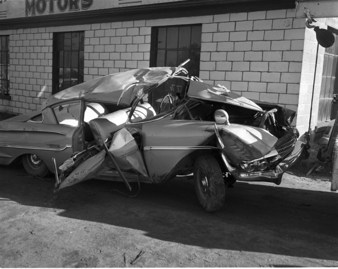 This was all that was left of Port McNicoll police chief John Magnus’ car after it had rolled over several times near the CPR subway, on Highway 12 between Midland and Victoria Harbour, early Monday morning. Unconscious for several hours, Chief Magnus is now progressing satisfactorily at St. Andrews Hospital, Midland.