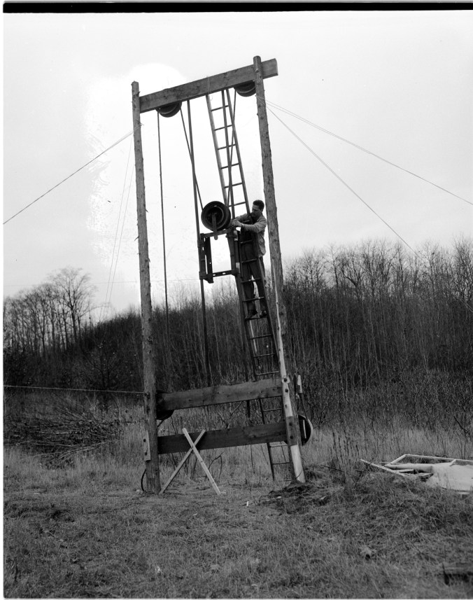 Among the improvements planned by Midland Ski Club for the coming season is a smoother-operating tow. Ross Irwin is seen adjusting an automatic tension device recently installed at the club. The club also hopes to open up a new trail this winter.