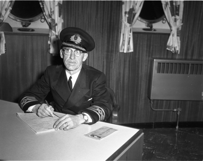 A Great Lakes mariner since 1917, Capt. Cecil Clarke has been appointed Commodore of the Paterson Steamship Co.’s fleet. Capt. Clarke succeeded Capt. T. C. Jewitt formerly of Penetang. Only two other Midlanders belong to the exclusive “Commodores club.” They are Capt. Frank Harpell, Commodore for Upper Lakes and St. Lawrence Navigation Ltd., and Capt. Alex McLennan, who was Commodore of the Canada Steamship Line’s fleet until his retirement a couple of years back. Commodores of Great Lakes’ fleets being as scarce as they are, Midland may be unique in Canada. There are few towns with three living Great Lakes Commodores.