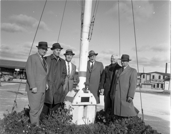 From the April 1958 newspaper; There will always be a part of Capt. Ed Burke on his beloved Midland waterfront as long as this flagpole stands. The flag was flying at half mast in honor of the veteran mariner, who died last week. Capt. Burke had erected the valuable pole, and enclosed it in a suitable base, at his own expense.