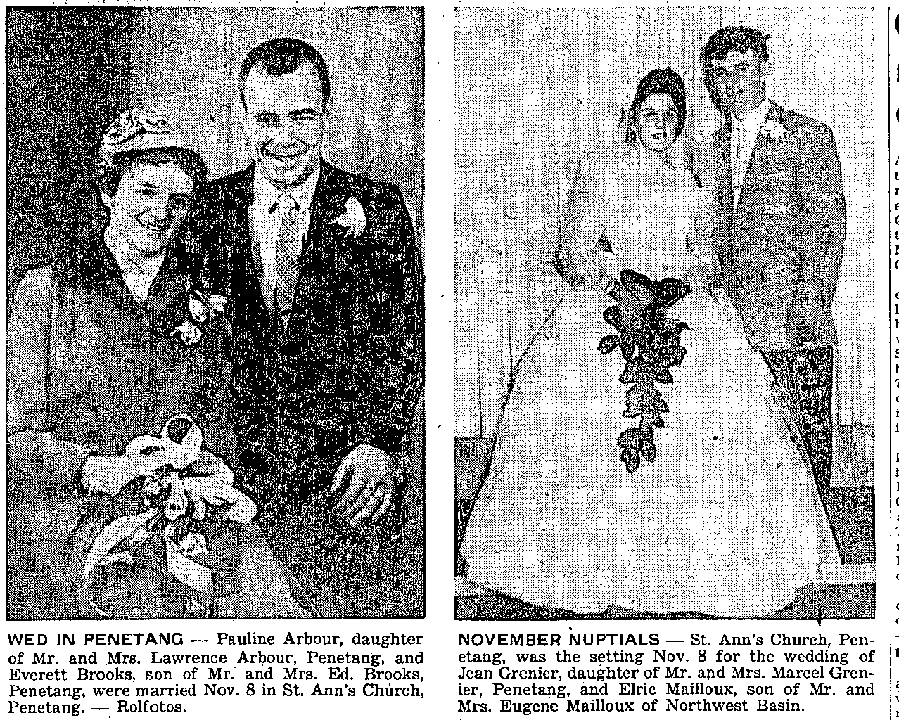 - LAFONTAINE NEWS— Teachers from Ste. Croix school here attended a convention last week. * Citizens in this district are complaining of the effects of the sonic booms being made by super-sonic speed aircraft flying over the area. The worst yet was Nov. 11. * Lionel Beauchamp’s car caught fire on the road and was completely destroyed. * Martial Marchildon is drawing loads of Christmas trees to his yard. * H. Beaudoin is busy repairing the home he bought on Con. 16. * Among those attending the Royal Winter Fair are Mrs. Irene Marchand and Honore Genier. Mr. Genier prepared the Lafontaine potato display at the fair. * Dandelions are still blooming in this area. * Miss Lea Toutant celebrated her 50th, birthday Nov. 11 and her uncle, Arthur Marchildon of Perkinsfield celebrated his 70th birthday the same day.