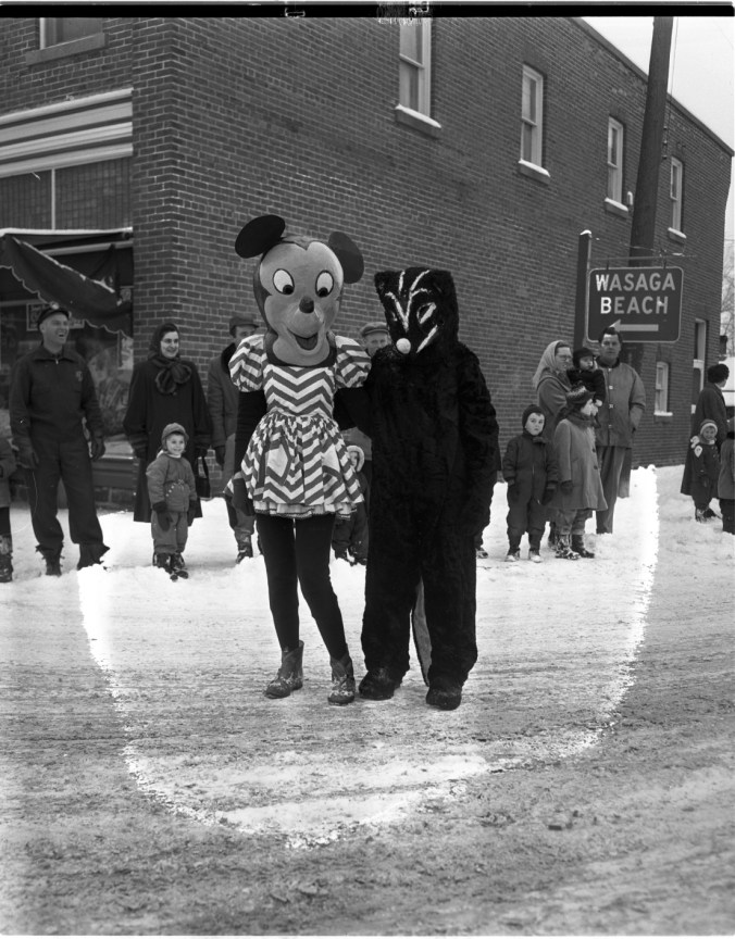 Rather an odd pairing, these two “characters” provided fun for the spectators along the route of the Santa Claus parade in Elmvale Saturday. There were a number of other animal characterizations to enliven the parade.