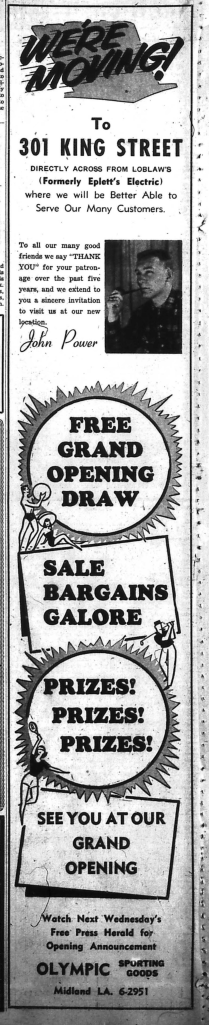 - Clerk Wm. A. Hack informed Midland council Thursday night that E. (Red) McCuaig had paid $5,000 for the town garage and has obtained his deed. (On Yonge St. between Manly and Russell, north side.)