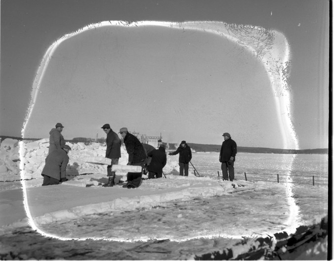 These men clearing snow from the deck of a freighter in front of the Town House elevator in Midland on Monday morning needed no urging to keep the shovels moving. The 10-degree below zero temperature and a brisk north wind whipping in across the bay kept everybody on the move.