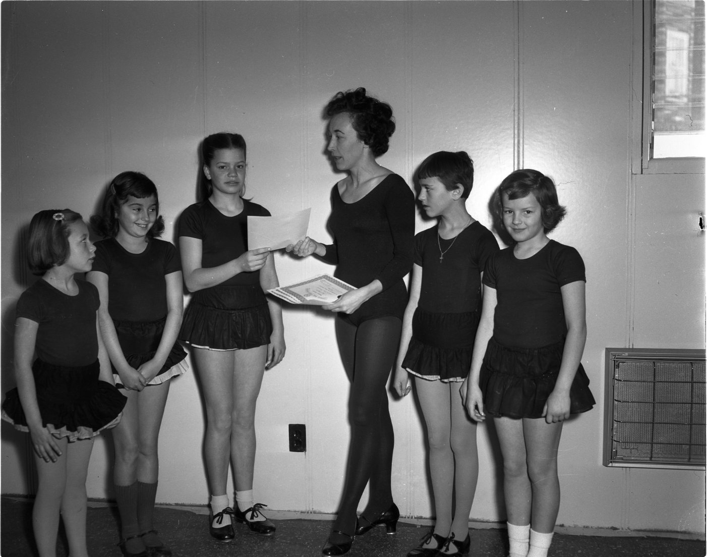 When it comes to “taps,” these girls are tops, as witnessed by their certificates from the Canadian Dance Teachers’ Association. The girls received their primary certificates following recent examinations in Toronto. Seen with their instructor, Mrs. Bob Stanway, they are left to right, Laurie Lee Stanway, Jane Ladouceur, Joyce Walker, Mrs. Stanway, Paulette Dewell and Joanne Adams. Nancy Beteau, now living in Detroit, also received her certificate. (Friend Nancy Beteau moved back from Detroit and had a very successful 35-year career with the CIBC in downtown Toronto. Semi-retired she moved back to Midland and worked at our CIBC branch. Nancy died May 8th, 2018 at GBGH.)