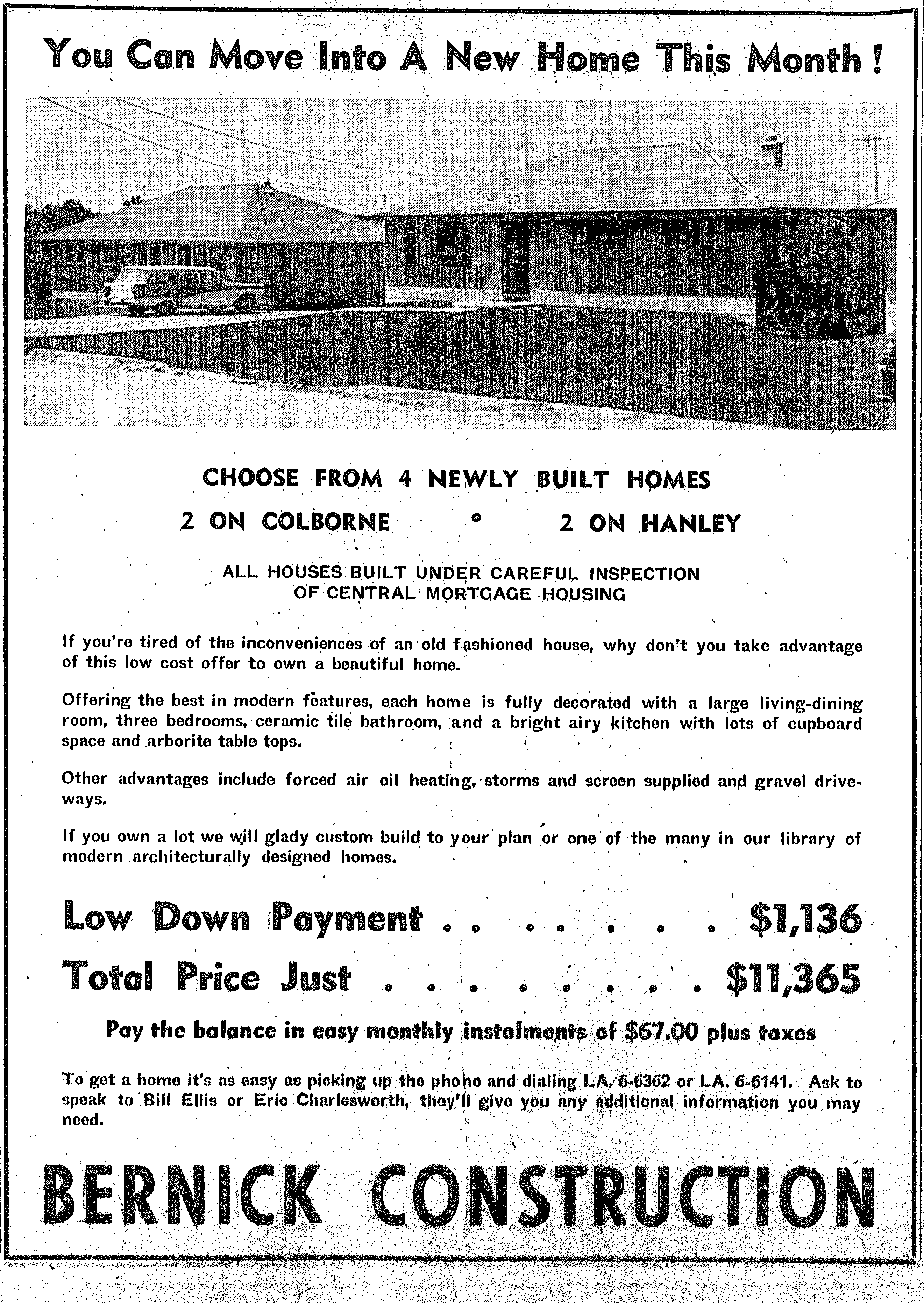 - Arnold Van Pypen REALTOR Port McNicoll— 212 Midland Ave. — LA. 6-6154 – FOR SALE – 317 Hugel Ave., Midland, — $15,000.00 or best offer—Solid brick 2 storey home, 16 rooms. Size lot 115 X 100 ft. Clean throughout. New Gas furnace, 3 bathrooms, excellent for 5 apartments. This link, the dollar house is from the Midland Heritage Inventory & Register, the best site for information on Midland’s historic buildings. file:///C:/Users/tom62/Desktop/Heritage%20Inventory%20and%20Register.pdf