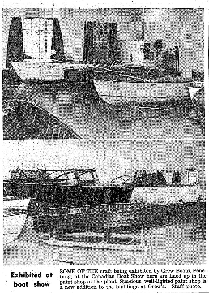 - A group of volunteers had difficulty Sunday pumping a reported six feet of water out of the converted Fairmile “Nadine,” tied up at Penetang dock. An investigation was launched when it was noticed the craft had developed a considerable list, and water was discovered in the hold. Several portable pumps were required to drain the vessel and bring her back to an even keel. The trouble apparently started when frost worked on the fitting plate of a seacock in the craft’s hull, and finally developed a leak.