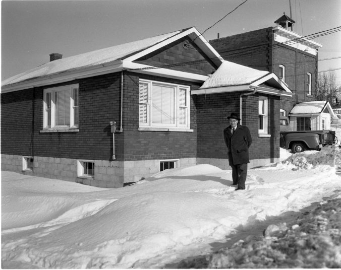 Small but compact, this building is the new home of Tay Municipal Telephone System. Tay clerk-treasurer and secretary of the phone system, Ralph Dalton stands in front. At the rear is the old building which was the home of Tay’s phone system from 1910 until last week. New building and equipment is part of a $30,000 outlay authorized by Tay taxpayers to bring their phone system up to date.
