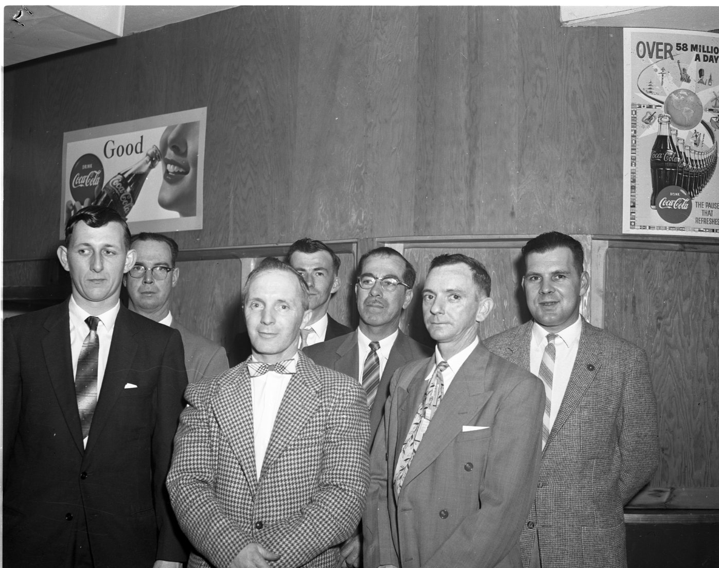 Seventy-one safe driving awards were presented to drivers of commercial vehicles at a meeting of the Transportation Safety Association of Ontario in Guthrie Saturday night. Among the Midland and district men who received awards were, front row, Douglas Hebner and Jack Holden, of Hebner’s Taxi; Gilbert Ladouceur, Penetang-Midland Coach Lines; and back row, Laval Dubeau, Leo Desjardins, Ed Moreau, and Kenneth Roduck, all of Penetang-Midland Coach Lines.