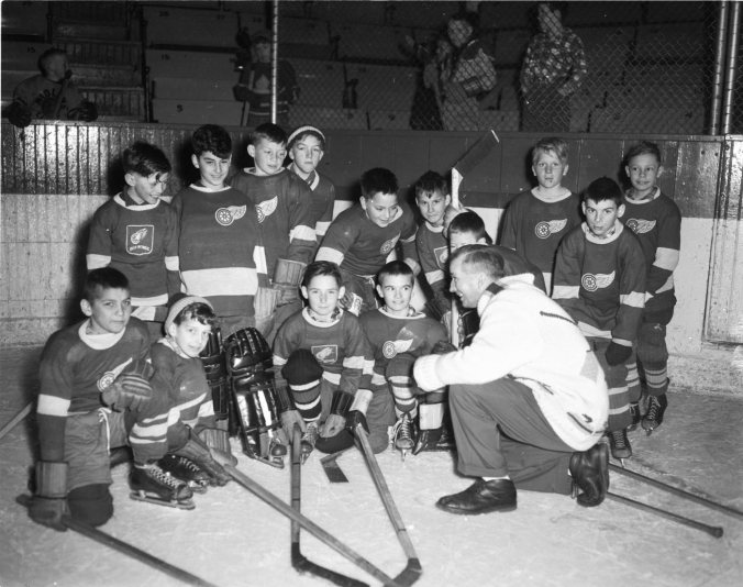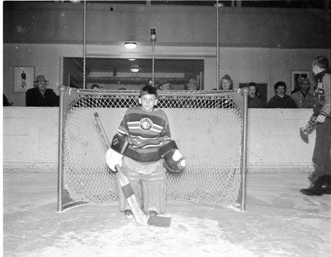 There’s a lot of unprotected goal area around Ernie Dubeau, one of Penetang’s Little NHL goalies. Fans at last Wednesday night’s playoffs were amazed at the way the midget sized net-minder kept the puck out of the nets.