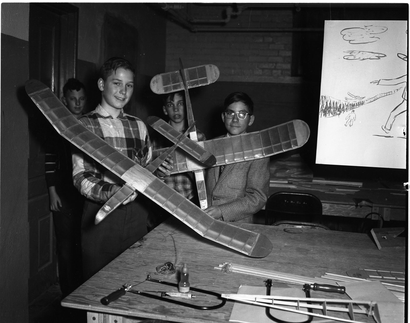 Although its value is under dispute in government and military circles at the moment, the aeroplane still attracts the fancy of many Midland lads who formed their own model club at Midland, YMCA. Keith Craig, left, and Tom Atkinson display two of the larger models on view at the hobby show in the ‘Y’ Thursday night.
