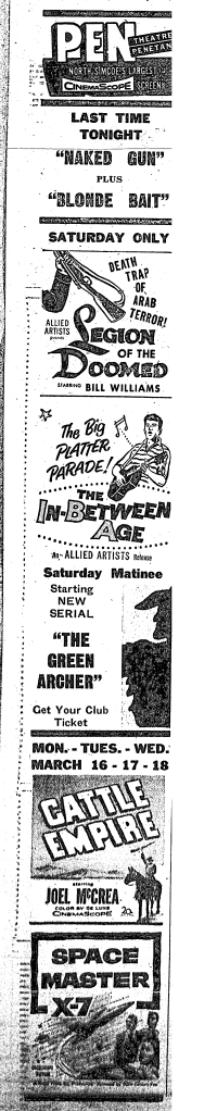 - County Herald headline of March 11, 1959; Man Attacks Young Girl – Flees from Irate Citizen. Midland police today are continuing their search for a “scruffy looking” man who attacked a 12-year-old while she and several companions were on their way home from a Girl Guide meeting about 9:15 p.m. Wednesday. The girls had left St. Mark’s parish hall about 9 p.m. and had reached the intersection of Hugel and Seventh Streets when one of them was grabbed by a man who had been following them and was thrown down on the snow. The girls’ screams attracted the attention of Herb Young, 371 Bay St. W. who took after the girl’s assailant and chased him to the vicinity of Knox Presbyterian Church where the suspect escaped up a lane.