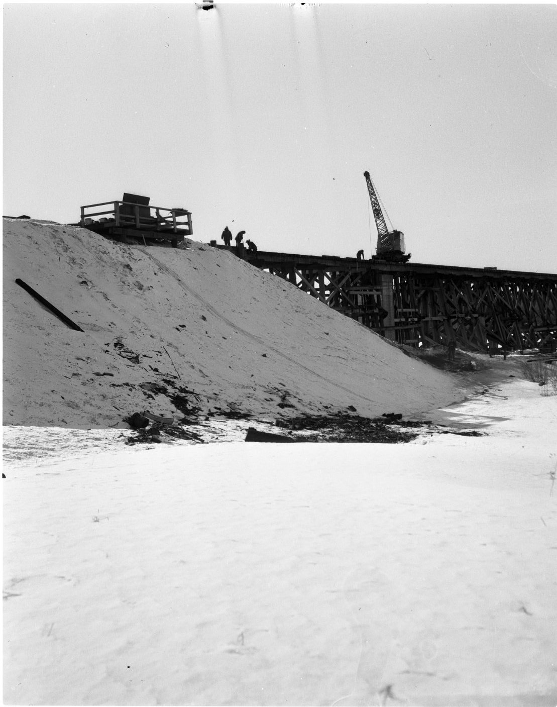 Every winter CPR Bridge and Building gangs go over the long trestle at Port McNicoll, keeping the near-mile-long bridge up to strength to handle the huge grain trains that pass over it almost daily. Similar care on other edifices around Ontario would have saved many dollars and lives this past winter. (Reference to the arena roof failure in Listowel)