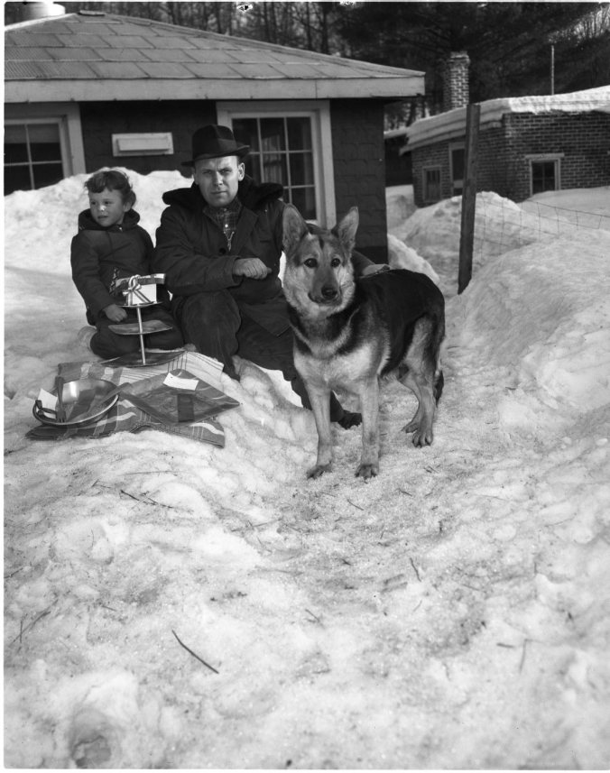 “Uschi”, who also carries the letters “Sch. H. 2” after her name, is a female German shepherd, imported from Germany a few months ago by Hans Albrecht. She made an auspicious debut to her new homeland recently by practically sweeping her class at the Canadian Sportsman’s Show in Toronto.