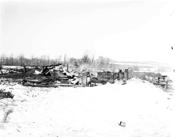 Twenty-six head of cattle, 16 pigs and a Shetland pony perished Saturday night when a fire completely destroyed the large barn on the farm of Bert Desroches, Con. 4, Tay. Also lost was a quantity of hay and grain and considerable machinery, including dairy equipment. The loss, which will run into thousands of dollars, was covered by insurance in part at least.