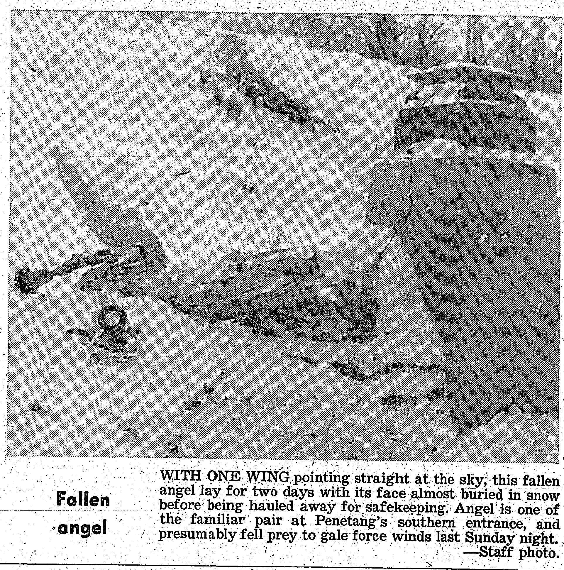 Looking further back we find this article in the July 12th, 1944 Free Press describing a shrine that is familiar to many who boat on the Bay. I was probably 14 or 15 when I first saw the Madonna high up on a rock ledge at the entrance to McRae’s Lake and had always wondered about its story. There is another version circulating in which a trapper is mauled by a bear but this one seems more plausible.