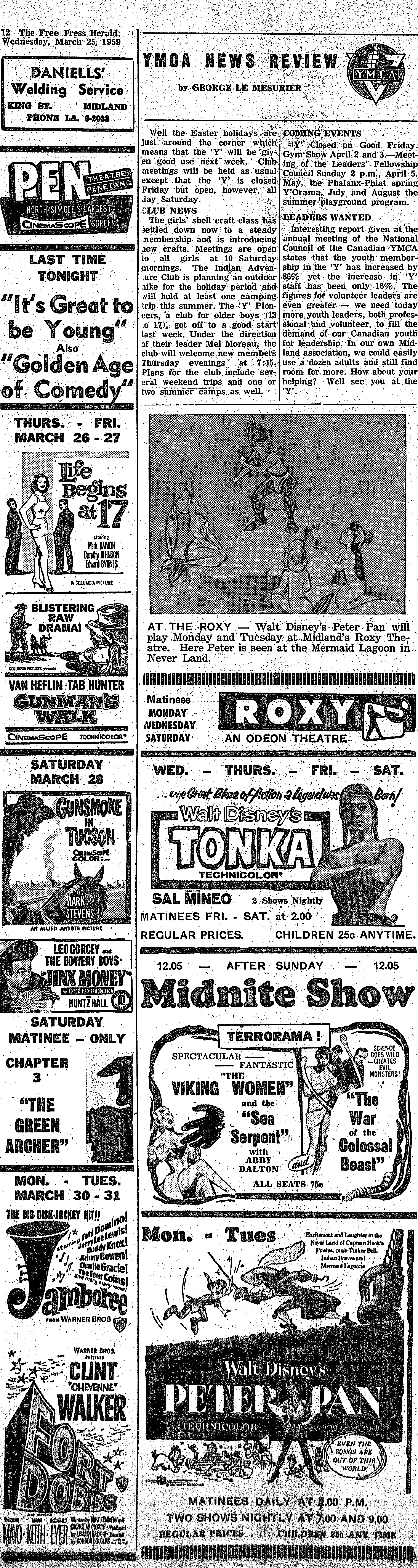 - 25 Years Ago This Week – Third Street, Midland, was lined with cars and trucks as district motorists sought to obtain their 1934 licence plates and drivers’ permits on deadline day. Licence issuer Joseph O’Shea reported it was the busiest day he had had in years. * * * Tay Township had entered suit against the town of Midland for $2,500 allegedly owed to the township in an adjustment of county levy made in 1931, plus interest of five percent per year from the date of the adjustment. * * * Inspector MacGregor of the Department of Game and Fisheries, whose patrol areas were in Simcoe County, reported that 62 dogs had been shot chasing deer. Sixteen of the dogs were hounds. The remainder comprised various other breeds. * * * Balmy spring weather which had encouraged district farmers to commence plowing their fields, ended abruptly with a storm that blanketed North Simcoe with several inches of snow. Snowplows were required to clear the roads and sidewalks after the two-day blow. * * * Penetang’s public health nurse reported that she had found 24 cases of defective teeth, 12 cases of enlarged glands but only one case of malnutrition among the town’s school children. * * * Capt. Reg Belcher of Victoria Harbour, master of the S. S. Collier, sailed the first ship out of Toronto harbor to officially open the 1934 navigation season for that port. The previous November Capt. Belcher brought the ice-coated Collier into Toronto and safety after bucking a severe storm on the lakes. She was the last ship to lay up in the fall. * * * Midland council and citizens were attempting to have the provincial government complete Highways 27 and 12 as a means of encouraging more tourists to visit the district.