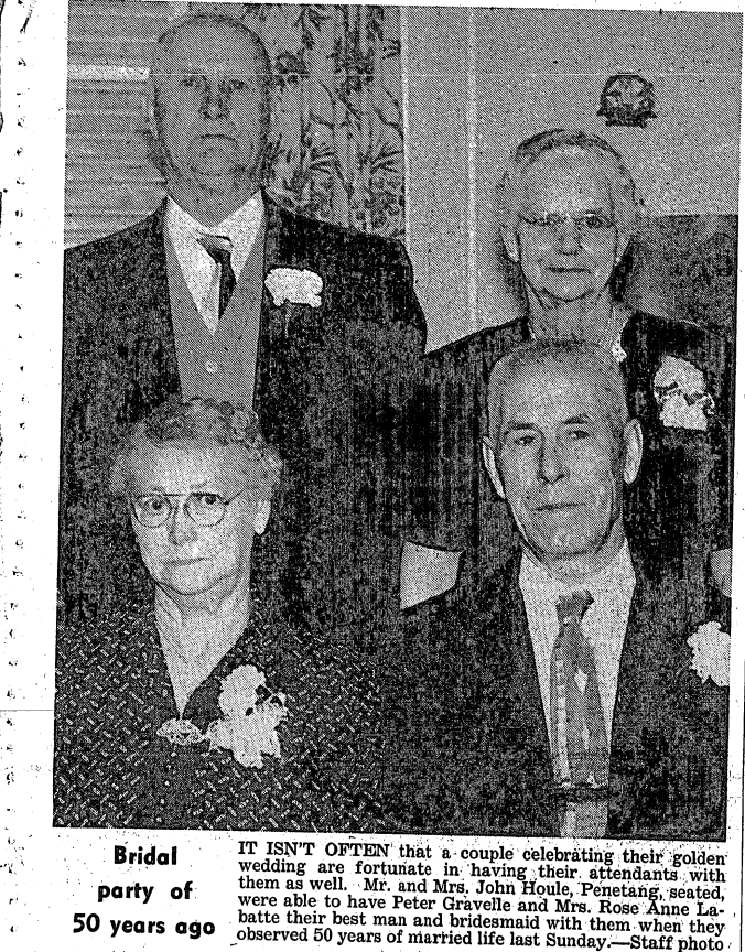 - MPDHS Hi-Sterics by David Maheu; Wednesday morning’s assembly was an outstanding one. Contributing to its success was the Glee Club which led off its presentation of negro spirituals and popular songs with a beautiful interpretation of God Save the Queen. During a break in the program, a member of the Students’ Council gave away a free ticket to the prom. The lucky girl was Lenore Faragher. This year’s prom will be called South Sea Serenade. In charge of the main part of the assembly program was Grade I0C. Introduced by MC Don Popple, John Carpenter read a humorous letter which had been given to him by a newly-enlisted soldier. It was signed “Elvis”. His selection was followed by a song presented by guitarist Roy Leclair. A humorous skit, portraying activities in station SLOB, was presented by Harry DeVries, announcer, and Winston “Liberace” Schell who played “Music to eat by”. Winston also filled in as weathercaster following the “newscast”. Guests “interviewed” were a boxer named Slugger and a tennis star, Hazel Condolis. A hit number was the Lloyd Preston Quintet comprised of Lloyd Preston, Milt Budarick, the two French boys and Murray Fagan. Lloyd demonstrated his ability by playing the piano, the violin, and the saxophone. This musical aggregation was followed by the Five Peppers, who sang. “I’ve Had It”; and two of their originals “Whisper Some”, and “What Did I Say, What Did I Do? Lloyd Preston and his band and Harry DeVries, Winston Schell, Kevin Rodgers, Roy Leclair teamed up for the finale.