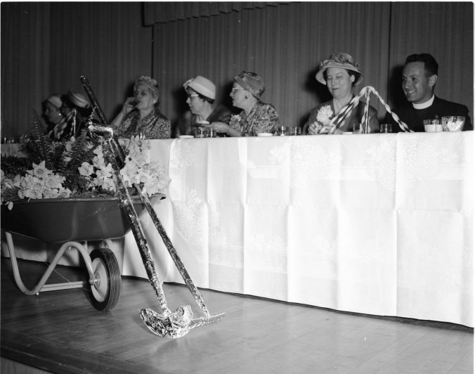 Persons attending the first “spring luncheon” ever held by the Woman’s Association of St. Paul’s United Church termed the event a “great success”. Among the head table guests were, left to right, Mrs. W. N. Keefe, vice-president, Mrs. Wilson Morden, Mrs. G. A. Perkins, president of Simcoe WMS, Mrs. Milt Trace, Elmvale, president of Simcoe W.A., Mrs. Stan Harman, president of the St. Paul’s group, controller Mrs. Jean Newman, Toronto, the guest speaker, and Rev. Wilson Morden, minister of St. Paul’s.