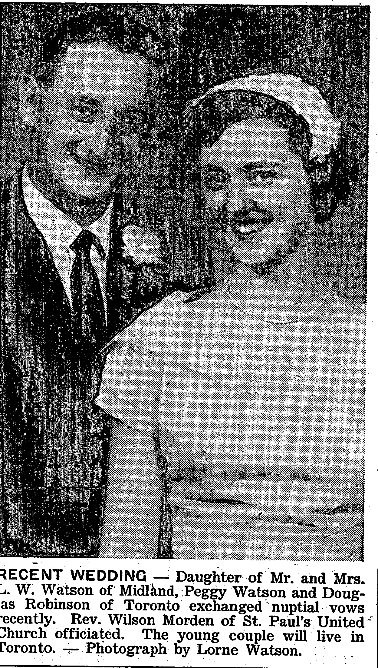 - President of Midland Planing Mills, Milton Johnston Bray, died Wednesday at St. Andrews Hospital. He was in his 80th Mr. Bray who came to Midland in 1901, married the former Effie Eugenie Sherwin in June 1906. The following year Mr. Bray and James A. Benson joined forces to form the firm known as Benson and Bray. They soon outgrew their modest plant at Montreal and Third Streets and a new company was formed, Midland Wood Products, which erected the building now used by Bay Mills Ltd. Extra capital was added and the company later became a limited firm. In 1935 the firm was liquidated and Mr. Bray returned to the site of his earlier operation. Associated with him was the Iate Norman J. Playfair, whose interests have since been purchased. Mr. and Mrs. Bray who celebrated their 50th wedding anniversary June 26, 1956, are both gardening enthusiasts and Mr. Bray was president of the Midland Horticultural Society for several years. He was recording secretary and elder of St. Paul’s United Church for 33 years. He was a charter member of the Midland Curling Club and was for many years a member of the YMCA board. During the building campaign for the new Sunday School at St. Paul’s United Church, Mr. Bray was co-chairman along with the late H. J. Thompson. Besides his widow, Mr. Bray is survived by son, Alan S. Bray of Port Arthur, daughters Marion A. Bray of Woodstock and Mrs. Clarke Edwards (Doris) of Midland, Mrs. R. Beaumont (Agnes) of Sault Ste. Marie and a son Frank of Midland. Funeral service will be held at A. Barrie and Sons funeral home Saturday at 2 p.m. with Rev. W. L. Morden officiating. Burial will be in Lakeview Cemetery.