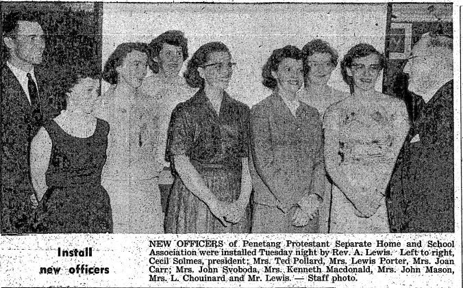 • Some 30 Penetang councillors and ex-members of the council and their wives were present at a testimonial dinner for veteran clerk-treasurer W. H. Hewson, who retired from that position last year after completing 30 years of service. The guest speaker was J. W. P. Carter of the Department of Municipal Affairs, who spent some time in Penetang during the depression assisting with the administration of the town after it had fallen into default along with a number of other municipalities. “When I first came to Penetang 22 years ago, things were not too rosy, and it was a treat to meet such a thorough gentleman as W. H. Hewson,” he said. “I have many happy memories of working with you Bill, especially since many of the things I had to do were not always popular. Somehow you had a knack of smoothing the way,” Mr. Carter said. Mr. Carter recalled that five of the seven members of the council at that time were on relief, and I had the job of convincing them they were spending too much money.”