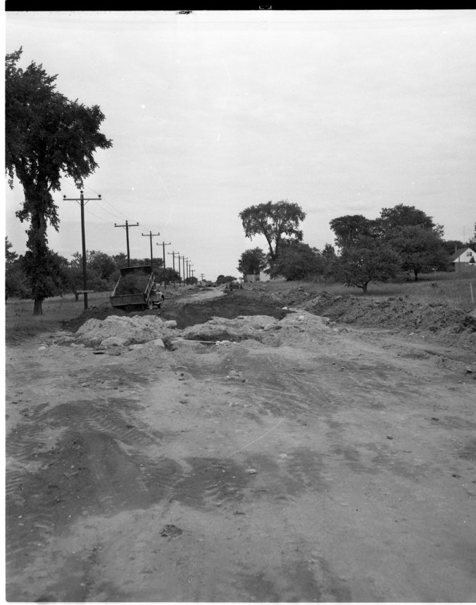 Another new thoroughfare is being opened to serve a rapidly expanding Midland. Trucks and bulldozers can be seen above working on Scott Street which runs between William and Johnson Streets, in the Wireless Hill district.