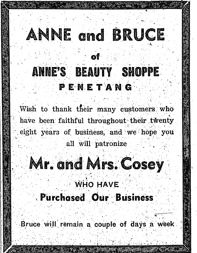 - Obituary – PERCY HOAG – A life-long resident of Midland, Percy Hoag died at St. Andrews Hospital July 1. He was in his 57th year. Funeral service was conducted by Rev. W. L. Morden at A. Barrie and Sons funeral home July 3. Pallbearers were Ernie Hamilton, Jack Gerow, George Thompson, Charles Stewart, Alfred Clute and Fred Norwood. Mr. Hoag, who was born in Midland and attended Regent School, injured his arches in a fall in his late teens and this injury eventually took him off his feet for the rest of his days. He is survived by a brother, Fred, and a sister, Mrs. Lena Sager, both of Midland. Burial was in Lakeview Cemetery.