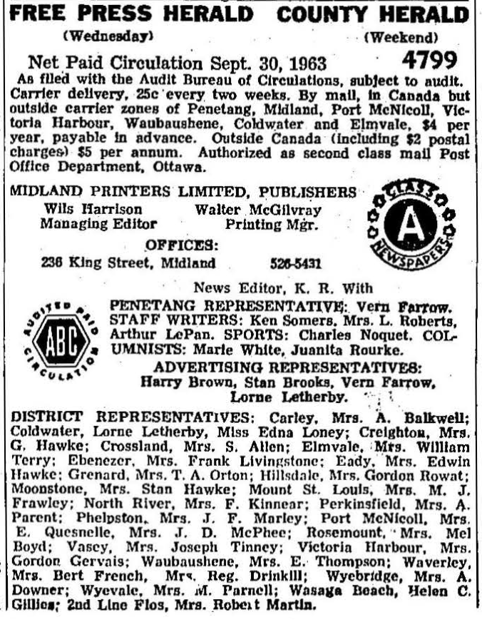 This newspaper “Masthead” was included in every edition of the Free Press and County Herald. This one is from the April 22, 1964 paper.