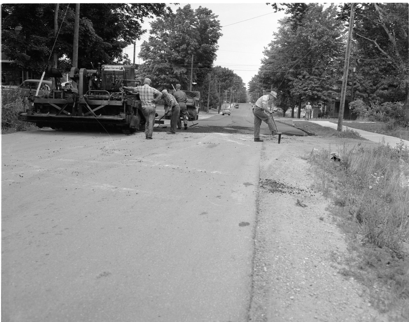 After many weary months of waiting, Midland residents are at last driving on the brand new pavement on a number of streets. In this photo, workmen are completing the two-block stretch on Hugel Ave. West, between Sixth and Eight Streets.
