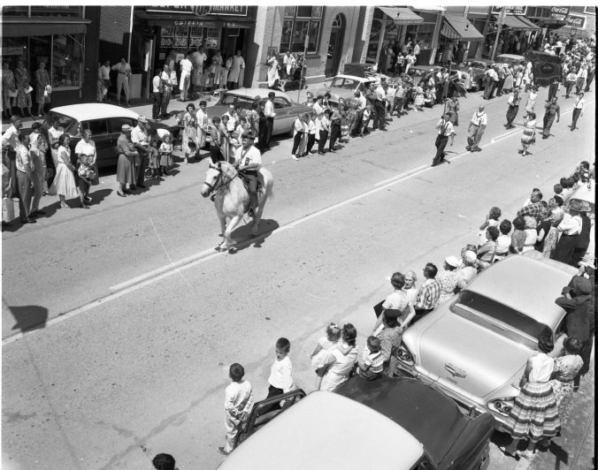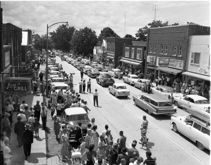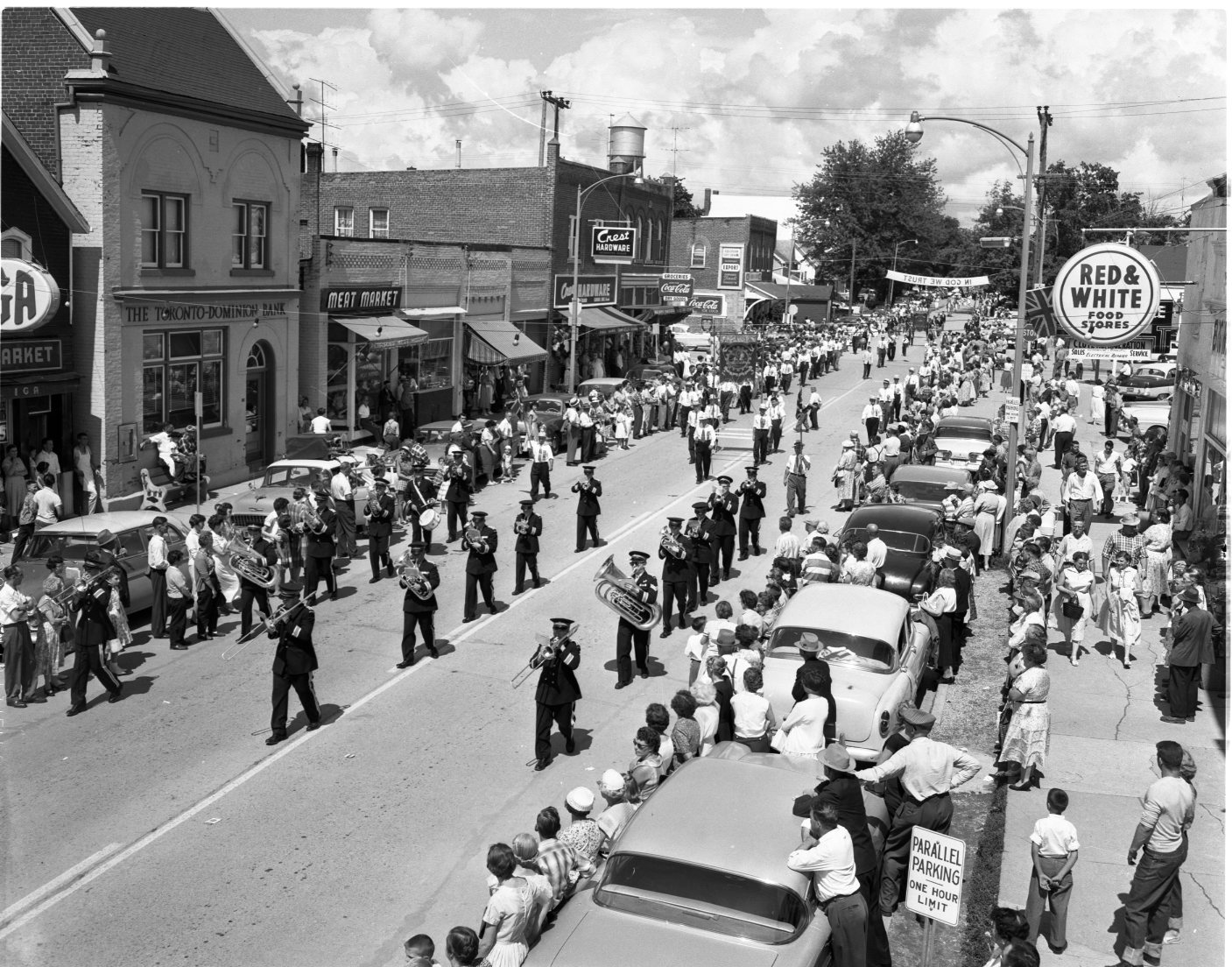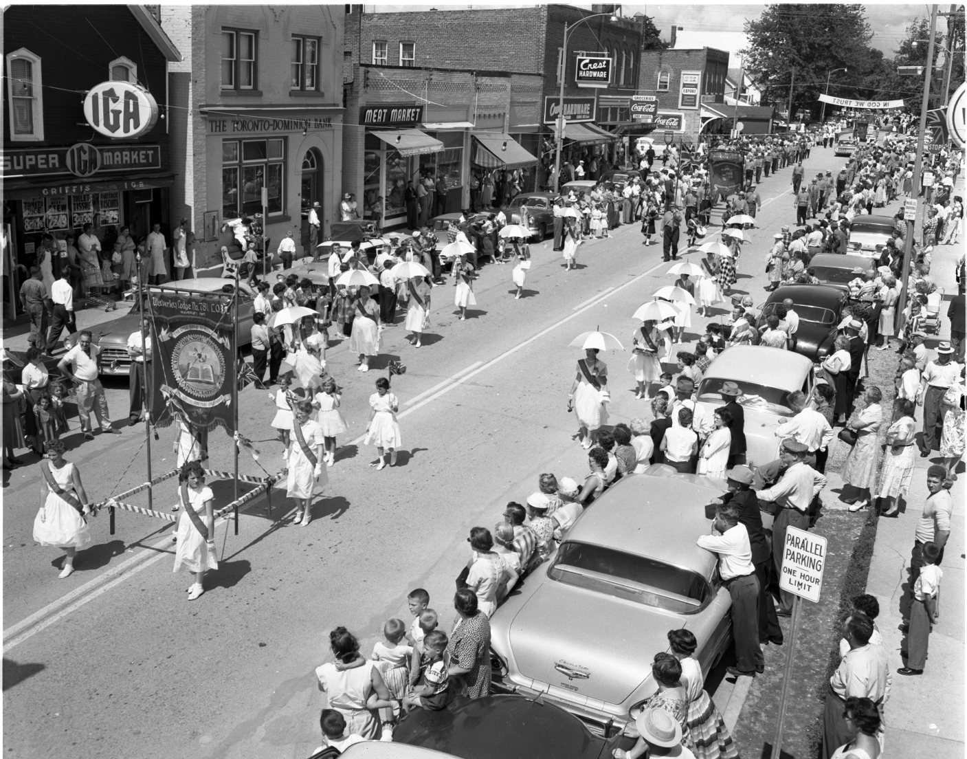 This photo was not used in the newspaper but is included to give a westward view down Queen Street and shows some of the traffic issues created by a large parade on a summer weekend at the junction of two busy highways.