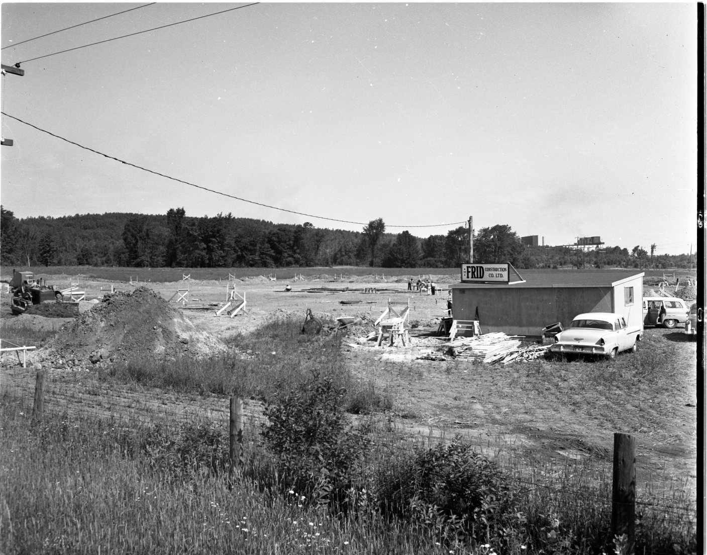 Work is now underway on the new 85,000 square foot factory building for the B. Greening Wire Company Ltd. Frid Construction Co. Ltd. has the contract for the building located beside Highway l2, about a quarter-mile west of Martyrs’ Shrine. (The Tiffin elevator can be seen in the background.)