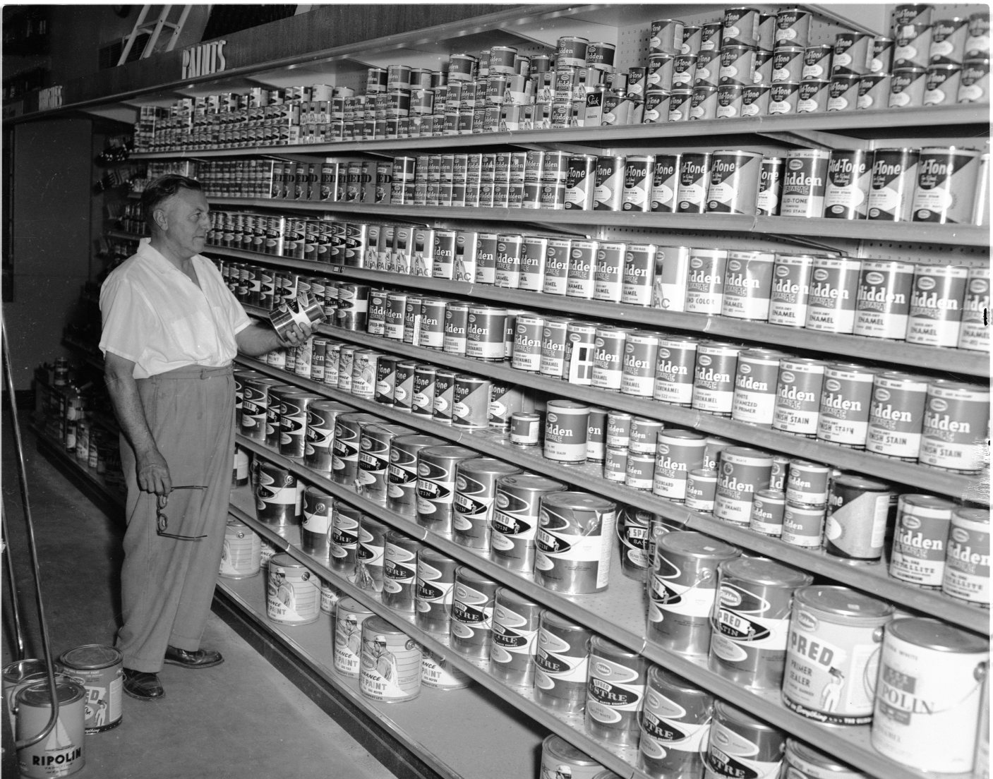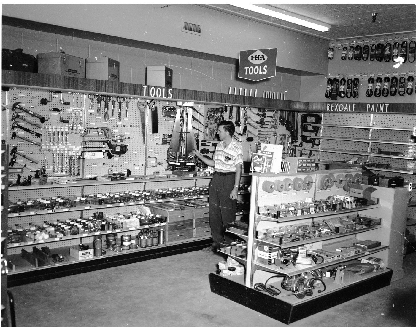 Dan Webb in charge of tool section at F. W. Jeffery and Sons new store.