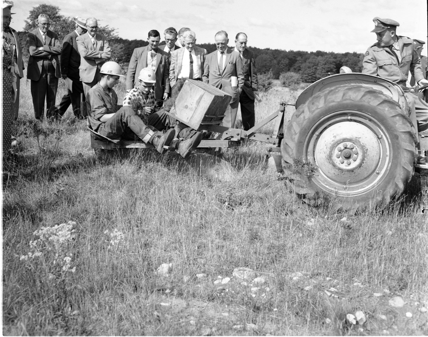 This is how they plant trees “the easy way” at Orr Lake Forest, it was explained during a tour sponsored by Department of Lands and Forests Friday. If it isn’t any easier, at least it’s faster. Using this machine, the two men can plant about 10,000 trees in a single day. From 1,000 to 2,000, depending on land conditions, is the best they could do by hand, members of County council, press, radio and TV were told.