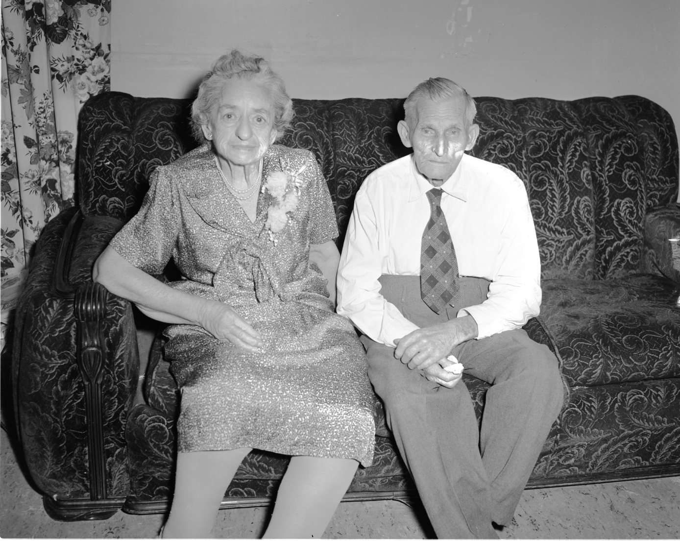 Former residents of Midland, Mr. and Mrs. John Miller marked their 50th wedding anniversary at Waverley Dec. 29. Now living with their daughter Mrs. Frank Stacey, John Miller and the former Ruth Haughton were married in the old Methodist parsonage at Penetang Dec. 29, 1909. Both had been born on farms in the Wyevale area. Following their marriage, Mr. Miller worked as a stonemason in and around Midland until 1930. They then moved onto a small farm on Highway 12, just east of Midland, where they remained until 1956. They have been living with their daughter since that time.
