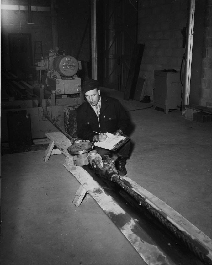 - Best possible news so far as Midlanders are concerned, 20 men from this area are already at work in the new B. Greening Wire Company plant. The men, from Midland and surrounding villages, are helping to prepare 40,000 feet of wire for use on three bridges in the Welland area. All were trained in the new Midland plant, adjoining Highway 12 near Martyrs’ Shrine. First productive work ever carried out in the new Midland plant, the wire ropes (made in the parent Hamilton plant) are being cut to length, pre-stressed and socketed. Eventually, the entire operation, including the manufacture of such ropes, will be carried out in the new building.