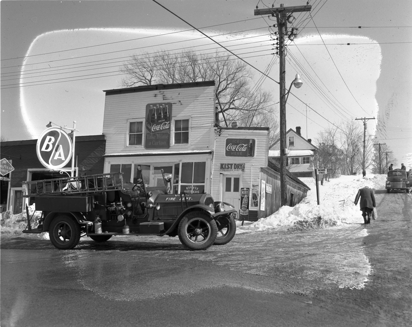 Firemen from Victoria Harbour and Port McNicoll saved this building when fire broke out in it around noon hour Thursday. The frame building, known as Moore’s Hardware, is believed to be more than 60 years old. The fire started around the chimney.
