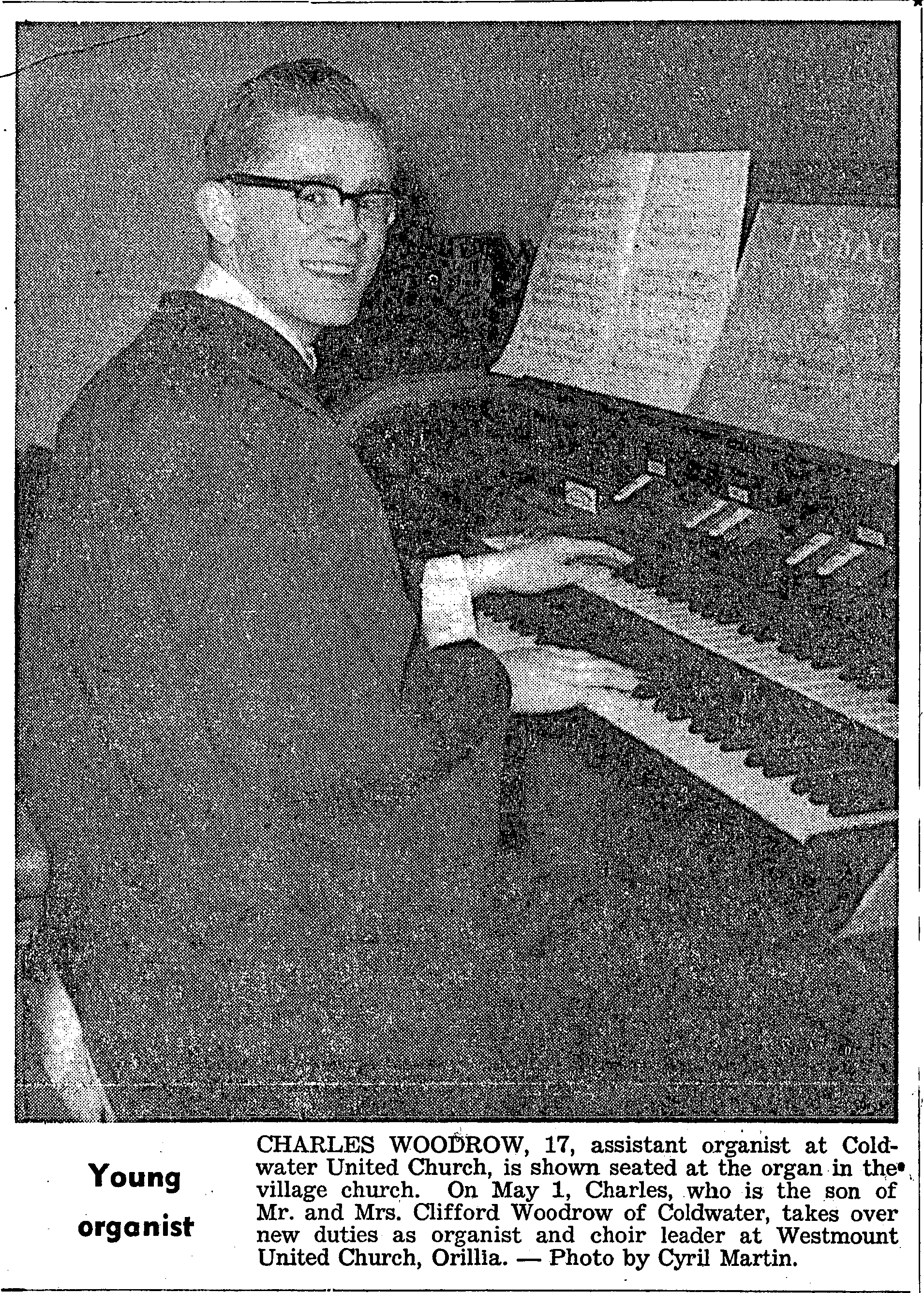 A resident of Midland for almost half a century, Grover C. Reynolds died at his home, 15 Horrell Ave., April 9, following a heart attack. Rev. L. J. Delaney conducted services at Nicholls’ funeral home, April 12. Members of the Midland Branch of the Canadian Legion, with Len Wiles, sergeant-at-arms, acted as pallbearers. They included Charles Stewart, Chris Gardner, Ralph McCall, Fred Ball, George Parr, and Jack Fitzgerald. Born at Orr Lake in 1886, Mr. Reynolds went to Hendrie school. He was married to the former Gladys Sager in Midland Nov. 27, 1912, and lived there a total of 48 years. A carpenter by trade, he was a member of the Anglican Church, the Orange Lodge, the Canadian Legion, and was a Conservative in politics. His main hobby was fishing. In addition to his wife he is survived by three nieces. Mrs. Wm. Martin (Helen) of St. Catherines; Mrs. Thomas Stephens (Eileen) Buffalo; Miss Betty Richardson, Barrie; and one nephew, Murray Richardson, Toronto. Other survivors include Mrs. D. R. Campbell, Morriss Musgrove, Mrs. Kathleen Cowan, Russell and Darcy Craighead, and Edwin Jardine, all of Midland, and Mrs. Reta Laughlin, Oshawa.
