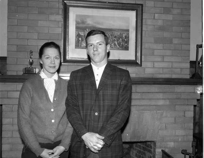 This is the time of year when bowlers collect the prizes they’ve won over the long, hard season just finished. Prizes for high individual scores in the Twin City League were won by left to right, front — Ina Knapp, May Williams, Shirley Jeffery; back — Leo Perrault, Gord Ross, Bob Somers.