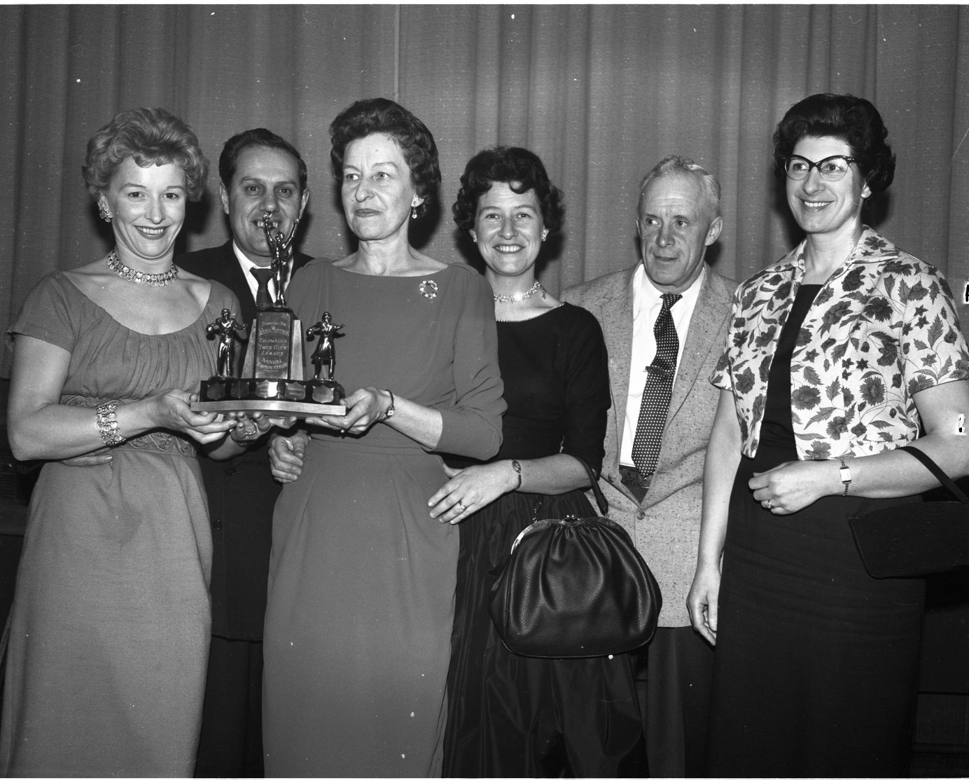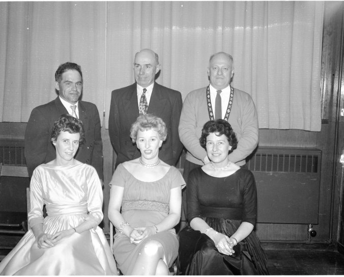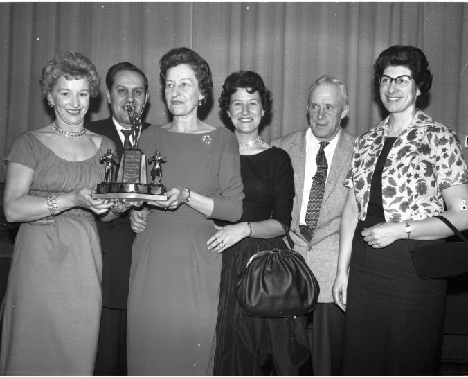 Members of the All-Stars, winners of the George Webb Trophy were May Williams, Phil Hamelin, Dorothy Spicer, Shirley Jeffery, Doug Swann and Joan Brechin. Not present was Pete Hamelin.