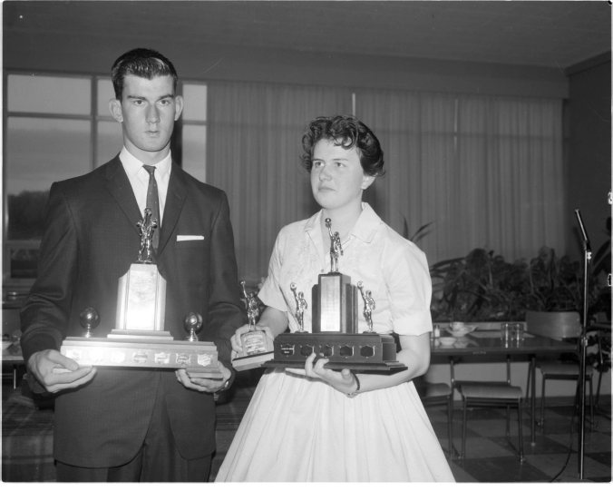 Most valuable players on MPDHS senior basketball teams this past season were Gary Donovan and Anne Maher. Gary holds the Ray Doolittle Memorial trophy and Miss Maher the Helen Booth (Penetang Bottling) trophy, presented for the first time this year.