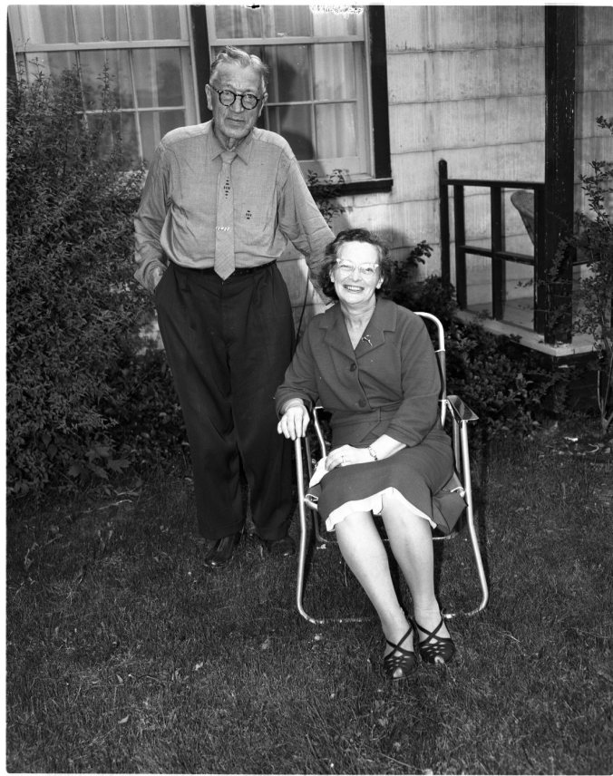 Strong family ties have always marked the married life Mr. and Mrs. Thomas Curry, 316 Queen Street Midland, who observed their golden wedding anniversary May 31. Getting a slight jump on the event, the Curry’s held “open house” for their many friends at the IOOF Temple Saturday afternoon and evening. Born at Rockland near Meaford, 76 years ago, Thomas John Curry is the son of the late Mr. and Mrs. J. W. Curry. There were five sons in this well-known district family, all of whom grew up on the homestead back of the Ontario Hospital at Penetang. Tom’s four brothers, all still living, are Bob, who lives in Alberta, David and Nelson of Midland, and Hugh who still lives on the old homestead. They all got together a few years back for the first time in more than 30 years. Tom had gone out west, too, early in his career, and when he came home he met a young girl named Rita Florence Kennedy at the skating rink one night. They started going together and May 31, 1910, were married at North Battleford Sask. The new Mrs. Curry had reached the “ripe old age” of 16 years at the time. Although she was only 16, Mrs. Curry had already been out working for four years and was no novice at housework. Born at Byng Inlet, she was one of four children born to the late Mr. and Mrs. J. N. Kennedy. One sister, Mrs. Alma Bradley of Philadelphia, still survives. Foreman in one of the French River lumber camps, her father was drowned when she was only five years old. The young girl was raised by her grandmother, Mrs. Hannah Kennedy, on a farm at Midland Point, and at the age of 12 years was out working in the home of one of the doctors at the Ontario Hospital. After a year of this, she spent three years in Toronto, where she helped look after a family of young children. The first 10 years of the Curry’s’ married life was spent on a farm in Saskatchewan. Returning to North Simcoe, they operated a farm at Wyebridge for another quarter-century, retiring to Midland 15 years ago. Mr. Curry now helps his son Manson, who operates a service station on King Street. There are four other children besides Manson, who has one brother, James of Toronto. His three sisters are Mrs. Sandy McQuaig (Eleanor) or Orillia, Mrs. Garfield Synott (Ethel), Port McNicoll, and Mrs. Len Murday (Alma), Hillsdale. They have provided their parents with four grandchildren. In their younger days, both husband and wife were members of LOL lodges at Waverley and Penetang. Mrs. Curry is still a member of the Rebekah Lodge in Midland. Her flowers and her garden still form a big part of Mrs. Curry’s everyday life. The canning season is the busiest time for her. “I must still think I’m on the farm, for I always do down hundreds of jars of fruit and jams,” she smiled. Most of it she gives away to friends, or to St. Andrews Hospital. Nevertheless the preserves do come in handy, for rarely a weekend goes by that Mrs. Curry doesn’t have a dozen or so visitors to feed. Seems that the family likes gathering together at home, and the feeling is mutual. “We have been very fortunate. None of our children ever caused us a moment’s worry,” said Mrs. Curry, who left no doubt that she would be happy to start wedded life all over again — with the same hubby. Both husband and wife still enjoy reasonably good health.