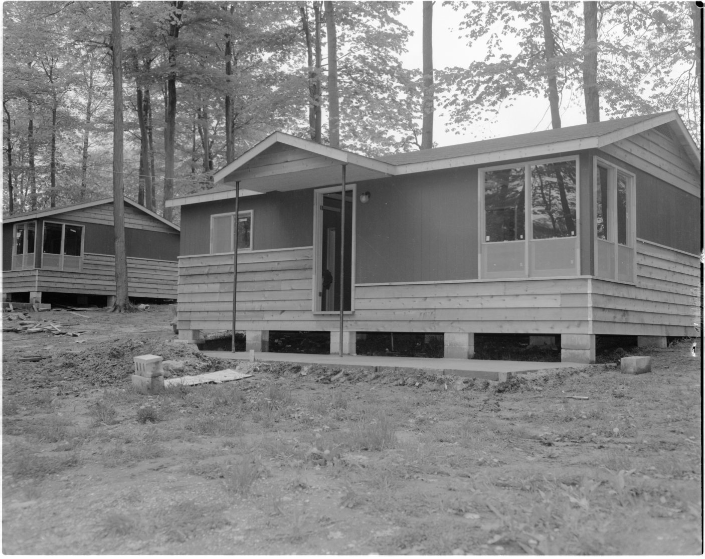 Midland Parks Commission has added three new cottages to its guest accommodation this year. Two of the nearly-completed units are pictured here. They differ in exterior appearance from those built in recent years.