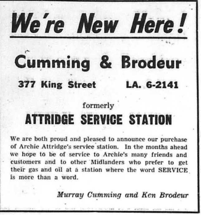 A 40 foot yacht belonging to Dr. Bernard Wolinski of Toronto, plunged 40 feet down the marine railway at Big Chute. Cause or the accident was mechanical failure on the railway, it was alleged. Principal damage was to a rudder quadrant, which was speedily repaired by Midland boat builders. • • • Upper School examination results were announced for Midland District High School. Percentage of papers written and passed was 83. Ten firsts was the record or Dorothy Gauld, Penetang. • • • Nowhere in Ontario or in Canada has history been so attractively packaged and so effectively merchandised as it has been here in Huronia. Travel and Publicity Minister Cecile told guests at the opening of the Huronia Room of the Champlain Hotel in Orillia. He was referring specifically to the work or the Huronia Historic Sites and Tourist Association. • • • For three days, steeple jacks Charlie Miner and Jimmy Wood had been painting and repairing the twin steeples of the Martyrs’ Shrine church. • • • Elmvale’s new tax rate had been struck at 39 mills, a reduction of 1.75 mills from the previous years rate. • • • For the second successive year, Royal Black Knights Preceptory No. 552, Midland, won a prize “for most uniformly dressed preceptory at Derry Day celebrations, this time held in Guelph. Three busloads of Midlanders, including the boys’ band, attended. • • • Dr. J. H. Cranston who had recently returned from a trip to Britain and the continent, was the next scheduled speaker for the Kiwanis Club of Midland.